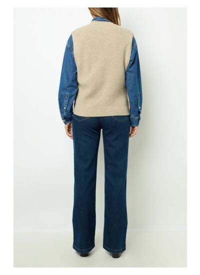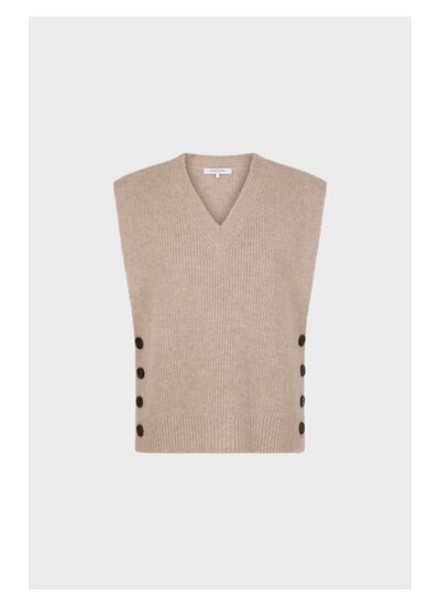 Pull col V sans manche à côtes. 100% laine.