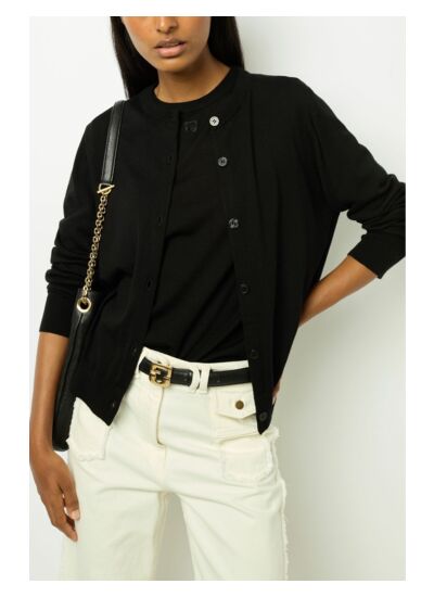 Cardigan en laine fine, à porter avec le pull assorti dans un esprit twin-set. Monogramme GD brodé en bas du modèle. 100% laine mérinos.