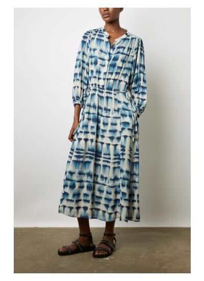 Robe midi dans une matière douce et fluide au toucher soie. Imprimé tie and dye dans un esprit bohème chic. A porter casual avec des sandales plates, ou sophistiquée avec des escarpins.