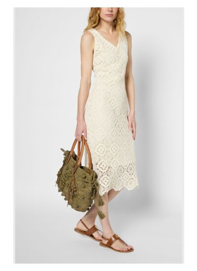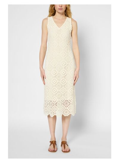 Robe sans manche en broderie anglaise, confectionnée en 100% coton. Sa coupe ajustée mettra en valeur la silhouette. A porter seule ou sous un blazer pour jouer l'élégance, avec des chaussures à talon ou des sandales plates pour un look naturel.