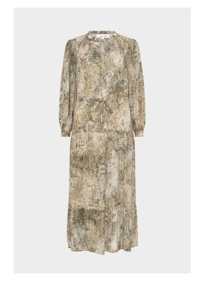 Robe longue avec un imprimé Python dans des tons de kaki. Confectionnée en voile de viscose, une matière douce et légère. Sa coupe cintrée avec son tombé volanté lui donnent une allure à la fois aérienne et féminine.