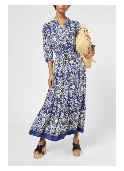 Robe longue imprimée à la taille élastiquée pour un plus grand confort. Matière douce au toucher soyeux.