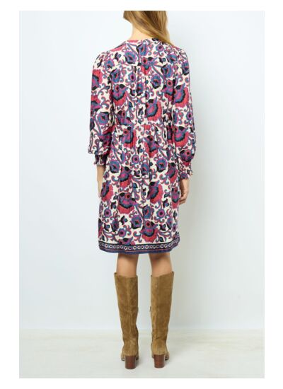 Robe courte avec un imprimé floral sur fond jacquard. Matière fluide au toucher doux.