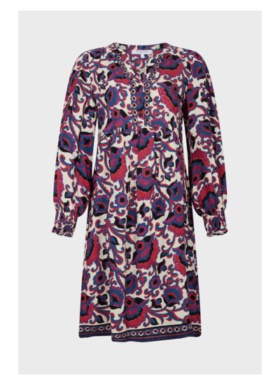 Éveillez votre féminité avec cette robe courte à imprimé floral, un incontournable du dressing moderne. Sa matière fluide et douce en 100% viscose vous enveloppe de confort tout au long de la journée, tandis que sa coupe droite et ample met en valeur votre silhouette avec élégance. Le col rond tunisien et les manches longues à poignets élastiqués smockés ajoutent une touche de sophistication, parfaite pour une sortie entre amis ou une journée au bureau.