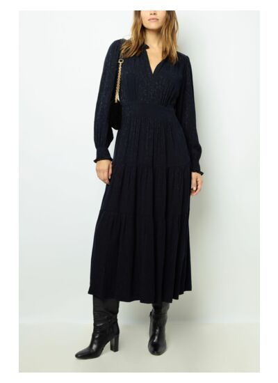 Il est recommandé de suivre les instructions d’entretien précisées sur l’étiquette, en privilégiant un lavage délicat ou un nettoyage à sec pour conserver la qualité du jacquard et la tenue des volants.
