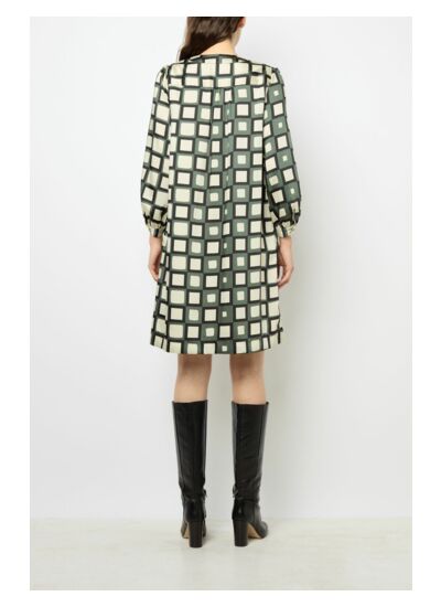 Robe courte en twill avec un imprimé géométrique dans un esprit seventies. Matière légèrement satinée.