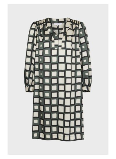 Cette robe courte en twill convient-elle pour un look quotidien ou une occasion spéciale ? Cette robe SASKIA allie confort et style avec sa coupe droite et son imprimé géométrique seventies, idéale pour un usage quotidien chic ou une sortie décontractée. Sa matière satinée apporte une touche d’élégance discrète adaptée aux occasions spéciales.