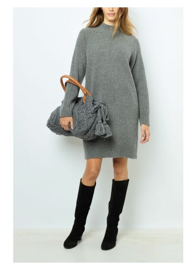 Robe courte et droite en laine avec une touche de cachemire. Col montant et coloris gris pour un esprit casual chic.