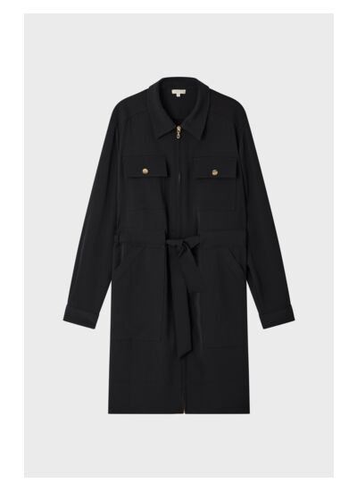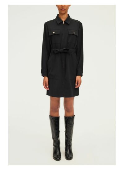 Robe courte fermée par un zip doré dans un esprit chemise. Porter chic et féminin.