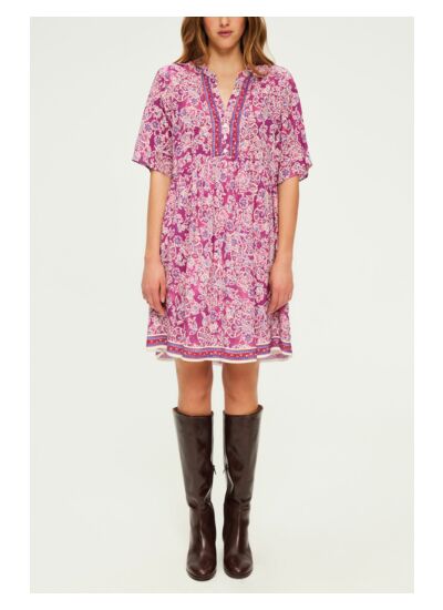 Robe courte à fleurs dans une matière fluide au toucher soyeux.