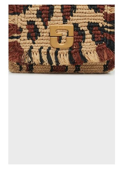 Tout petit bijou de la collection raphia, Le Mini Fanny a tout d?une icône. Son format idéal de jour comme de nuit et sa bandoulière en chaine, offrent un porté confortable, à la fois chic et pratique. Mais c?est en métal sur le fermoir de son crochetage en raphia effet léopard que brillent ses initiales.