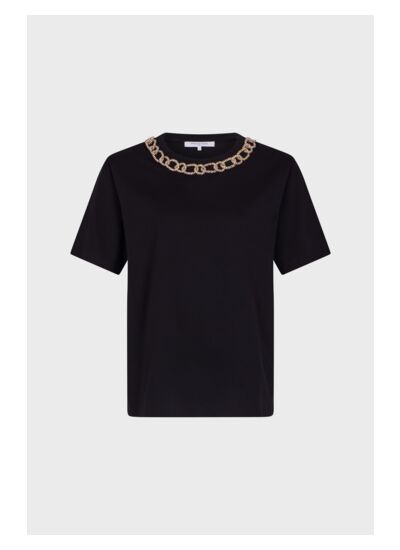 T-shirt uni en 100% coton. Col orné d'une chaîne avec des strass pour un twist rock.