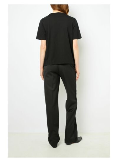 Ce t-shirt est-il fidèle aux tailles habituelles ? Oui, la coupe droite et la longueur standard assurent un ajustement conforme aux tailles classiques. La mannequin mesure 178 cm et porte une taille 1 pour référence.