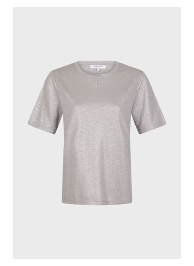 T-shirt à manches courtes au col orné du logo GD. 100% lin foil pour un effet brillant métallisé.