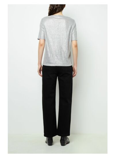 Ce t-shirt convient-il pour un look casual ou plus habillé ? Sa matière brillante et sa coupe épurée le rendent polyvalent, idéal pour un style décontracté chic ou une tenue plus sophistiquée avec des accessoires adaptés.
