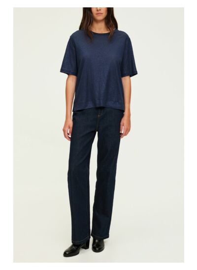 T-shirt à col rond et manches courtes en 100% lin brillant.