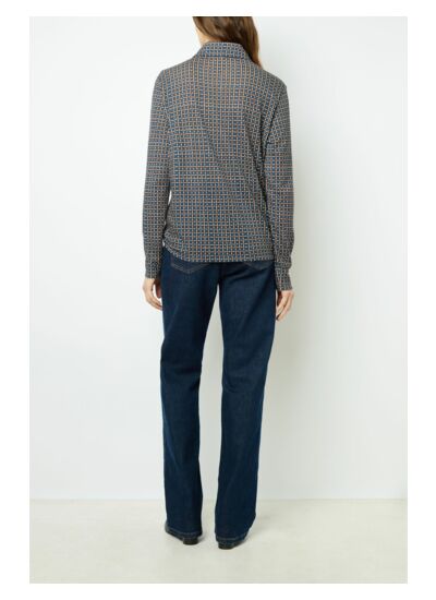 Ajoutez une touche de modernité à votre garde-robe avec ce polo imprimé géométrique en coton mélangé. Sa coupe droite et son motif audacieux en font un incontournable pour un look à la fois décontracté et élégant. Conçu pour le quotidien, ce polo se distingue par son col fermé par un bouton et ses manches longues, offrant une allure soignée tout en garantissant un confort optimal grâce à sa matière légèrement stretch.