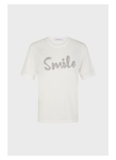 T-shirt en 100% coton avec un message "Smile" en strass.