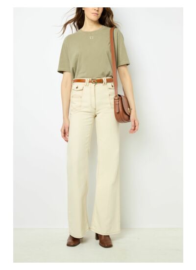 Ce t-shirt est-il fidèle à la taille indiquée ? Le t-shirt AZEMIA taille normalement. La mannequin mesure 174 cm et porte une taille 2, ce qui correspond à une coupe droite et un confort optimal. Quel est le matériau utilisé pour ce t-shirt ? Il est confectionné en 100% coton uni avec un effet délavé, garantissant douceur, respirabilité et une tenue naturelle au quotidien. Comment entretenir ce t-shirt pour préserver sa qualité ? Il est recommandé de laver ce t-shirt en machine à 30 degrés avec des couleurs similaires, d’éviter le sèche-linge pour conserver l’effet délavé et la forme. Peut-on associer ce t-shirt avec d’autres styles ? Oui, son coloris kaki clair s’accorde parfaitement avec des teintes pastel ou foncées, offrant une grande polyvalence pour un look casual ou plus travaillé. Quelle est la coupe et les finitions de ce t-shirt ? Il présente une forme droite, une longueur standard, un col rond avec finition bord-côte et des manches courtes, assurant un style simple et élégant.