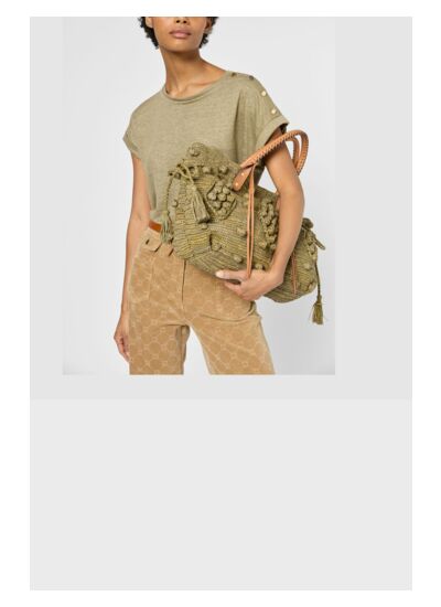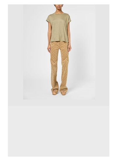 T-shirt large en 100% lin à l'épaule ornée de boutons dorés. Coloris kaki dans un esprit safari chic.