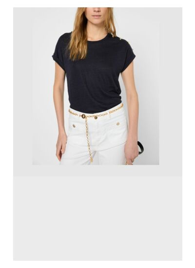 T-shirt large en 100% lin à l'épaule ornée de boutons dorés. Esprit casual avec une pointe de sophistication.