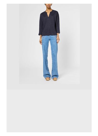 Ce T-shirt à col tunisien en 100% lin est l'essentiel de votre garde-robe estivale. Avec sa coupe droite et son volume ample, il offre un confort inégalé tout en mettant en valeur votre silhouette. Sa texture légère et respirante en fait le compagnon idéal pour les journées ensoleillées, vous permettant de rester chic sans effort. Les manches 3/4 et l'emmanchure basse ajoutent une touche décontractée, parfaite pour un look à la fois élégant et relax.