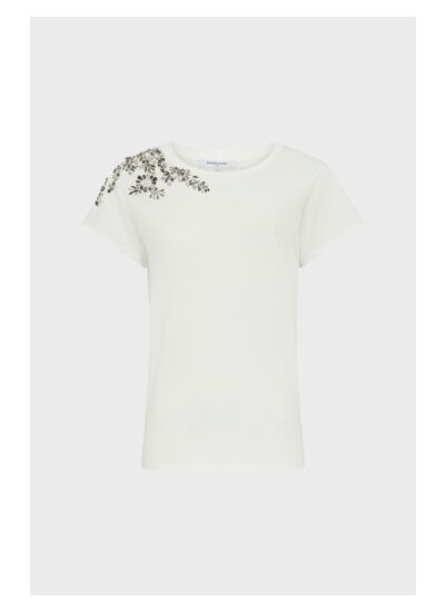 T-shirt en 100% coton à l'épaule ornée de bijoux en strass.