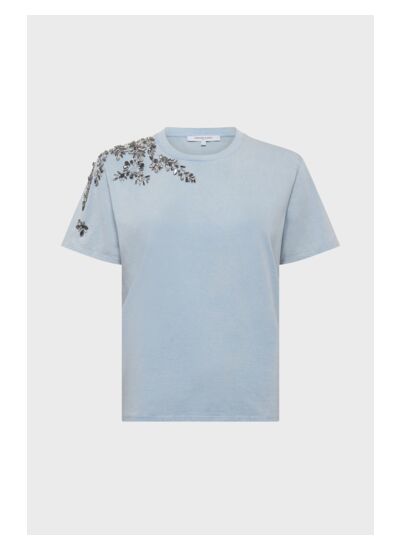 T-shirt en 100% coton à l'épaule ornée de bijoux en strass.