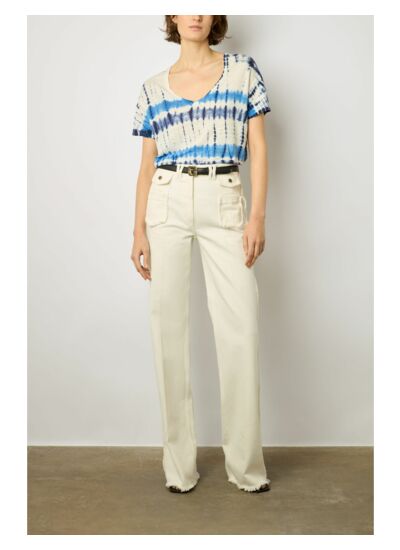 T-shirt V imprimé tie and dye. 100% lin.