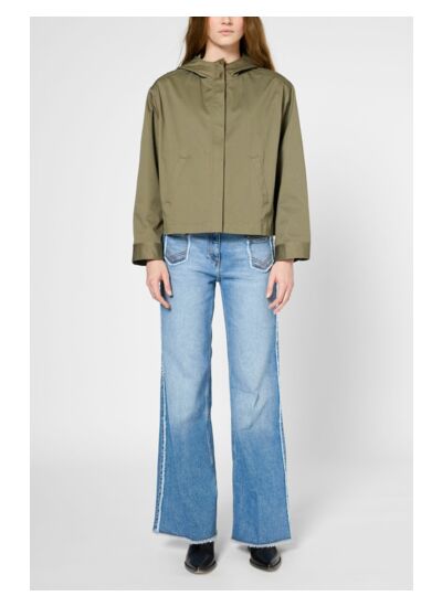 Cette parka courte à capuche en coton est l'alliée parfaite pour un look décontracté tout en restant chic. Sa coupe droite et son volume ample offrent une liberté de mouvement inégalée, idéale pour les journées actives. Confectionnée en coton uni, elle garantit confort et respirabilité, vous permettant de vous sentir à l'aise tout au long de la journée. Le col montant et la capuche ajoutent une touche de modernité tout en protégeant des intempéries, tandis que les manches longues et les poignets à bouton pression assurent une finition soignée.