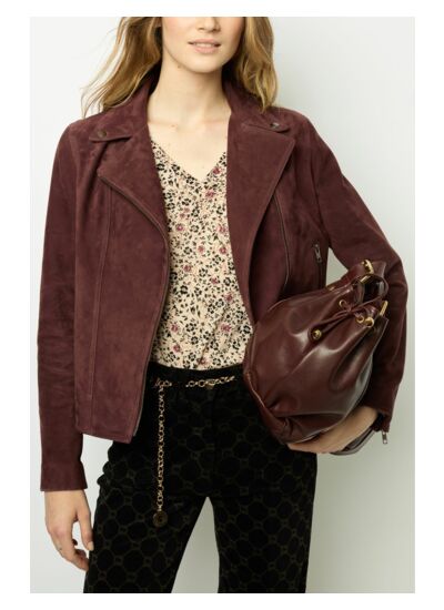 Blouson en cuir velours souple et doux. 100% cuir de chèvre.