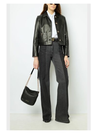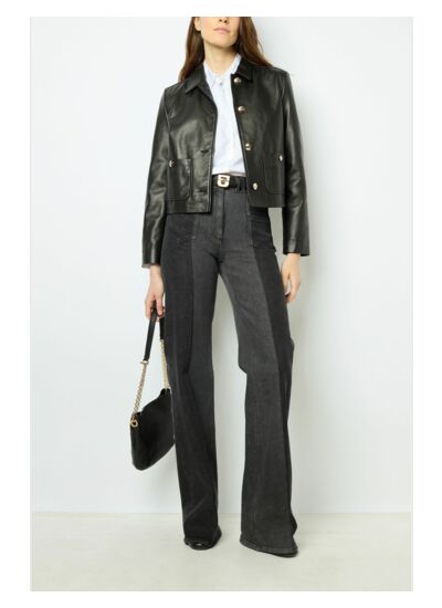Veste en cuir d'agneau plongé, lisse et souple, avec des boutons dorés. A porter avec le jean Anna dans un esprit chic et rock.