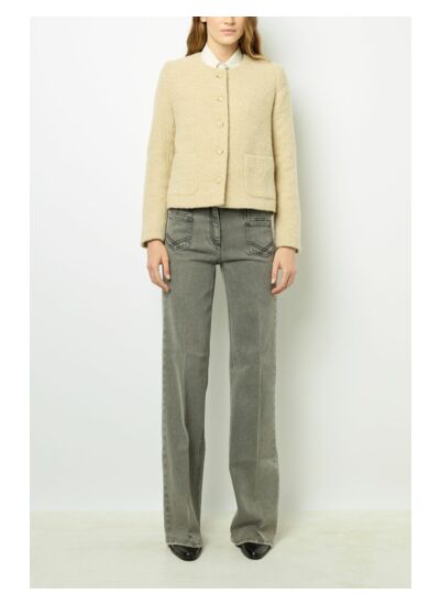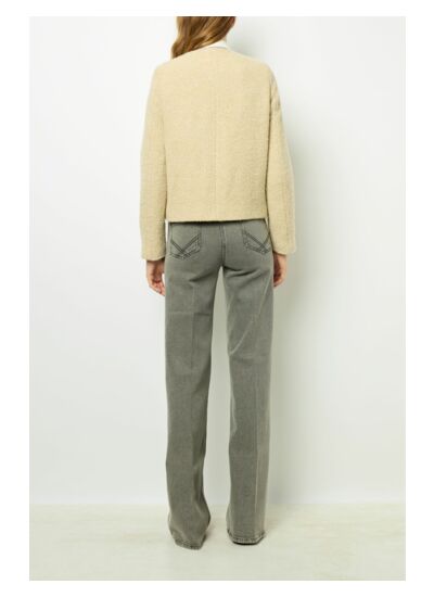 Quels sont les détails qui font la différence sur cette veste ? Les boutons dorés en tweed et les poches plates à la taille apportent une finition soignée et raffinée, tandis que l’absence de col et les manches longues renforcent son allure contemporaine.
