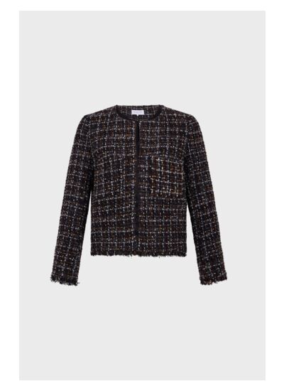 Veste courte en tweed multicolore avec une pointe de lurex.