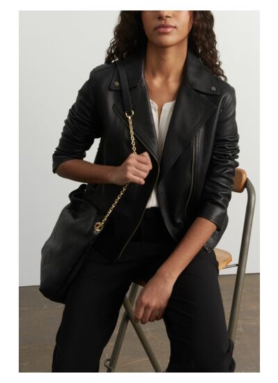 Blouson en cuir noir style "biker"