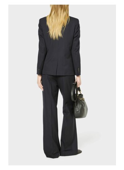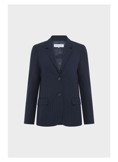 Veste de tailleur à fines rayures blanches, à porter avec le pantalon assorti ou à dépareiller pour un esprit casual chic.
