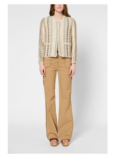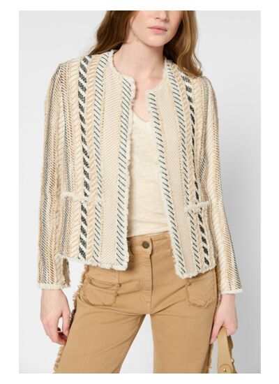 Veste courte aux finitions effilochées avec des bandes rayées. En coton mélangé.