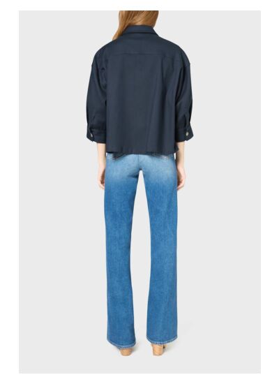 Les manches 7/8 et le col chemise apportent une note chic, tandis que les poignets boutonnés ajoutent une touche raffinée. La poche plate à la poitrine est non seulement pratique, mais elle renforce également le style décontracté de la veste. Avec sa matière stretch, elle s'adapte parfaitement à votre silhouette, vous garantissant un look flatteur.