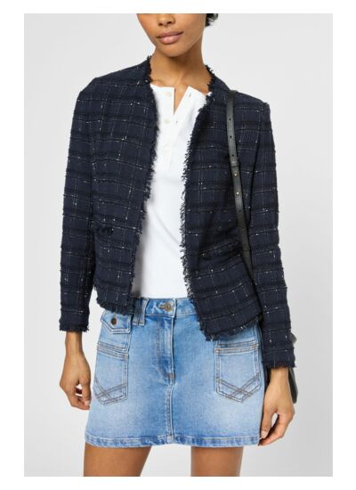Veste en tweed à franges dans un esprit classique chic. A porter avec le pantalon assorti dans un esprit tailleur.