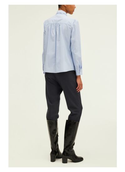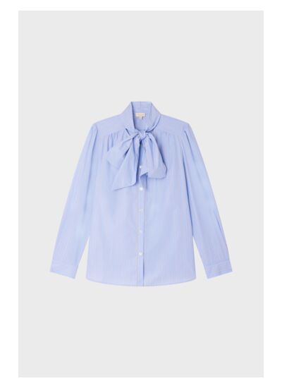 Chemise rayée à col lavallière en 100% coton. Esprit classique revisité.