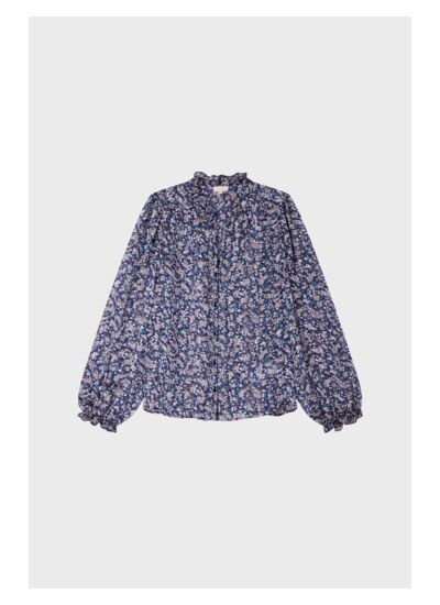 Chemise en mousseline avec un imprimé floral et une pointe de lurex. Boutonnée sur toute la longueur.
