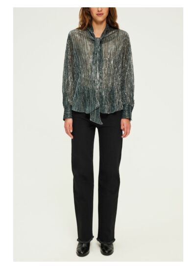 Top en lurex et col lavallière dans un esprit vintage chic.