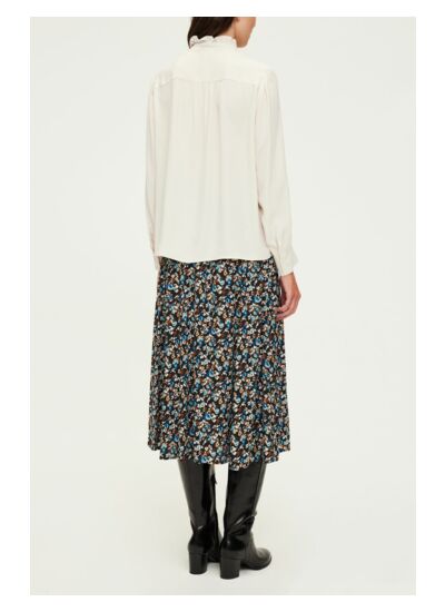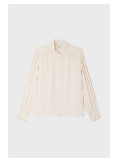 Chemise fluide à col montant dans un esprit classique revisité. Mélange contenant de la soie.