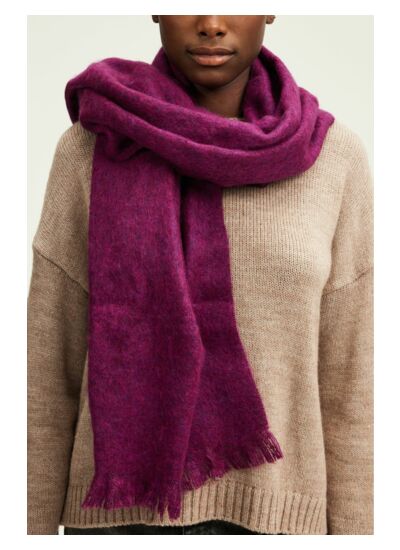 Echarpe unie dans un mélange contenant du mohair. Coloris lipstick pour dynamiser un manteau foncé.