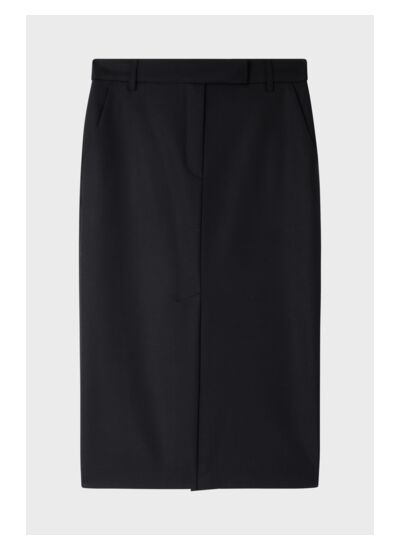 Jupe droite de tailleur dans un mélange contenant de la laine. A porter avec la veste assortie ou décalée avec un pull.