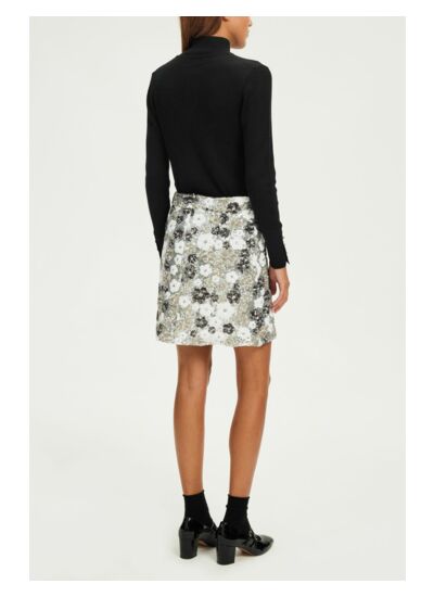 Ajoutez une touche de glamour à votre garde-robe avec cette jupe courte ornée de sequins, inspirée des années seventies. Sa forme droite légèrement évasée flatte toutes les silhouettes, tandis que le motif scintillant attire tous les regards. Conçue pour vous faire briller lors de vos soirées, cette jupe se marie parfaitement avec un top en soie ou un t-shirt décontracté pour un look chic et tendance. La fermeture zippée dans le dos assure un ajustement parfait et un enfilage facile.