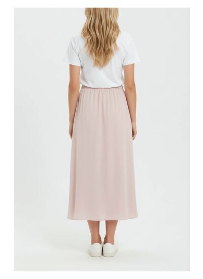 Jupe nude en satin légèrement plissé pour une allure élégante et contemporaine. A porter avec des escarpins à talon dans un esprit féminin sophistiqué.