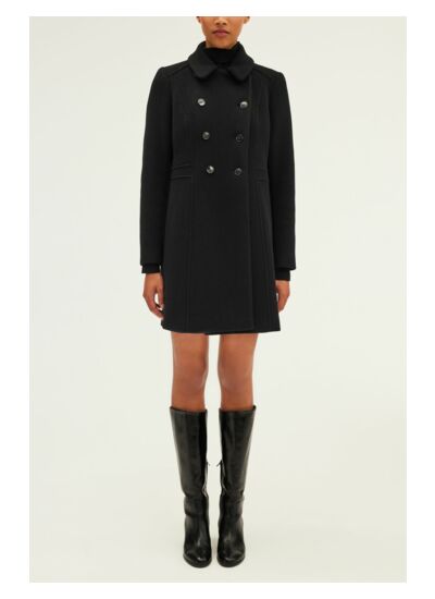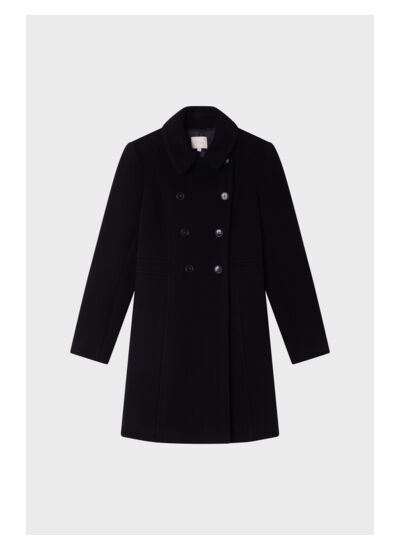 Manteau mi-long cintré à boutonnage croisé en laine vierge mélangée. Porter chic et moderne.