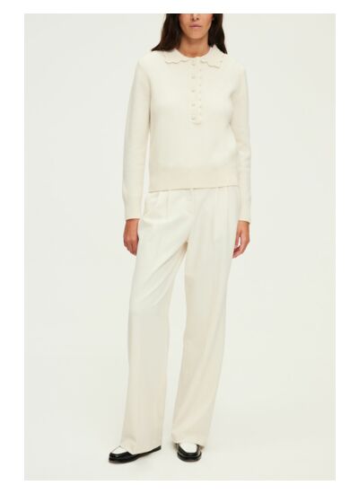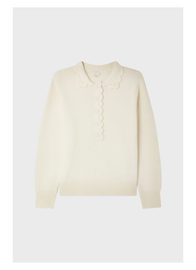 Pull polo en laine écrue avec des finitions brodées. 100% laine.