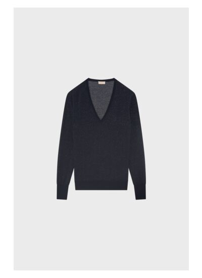 Pull V en laine fine mélangée incrustée de lurex argenté.